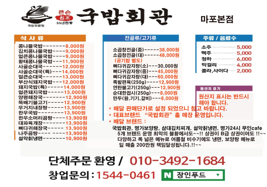 국밥회관 메뉴