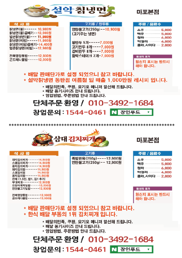 순대국, 해물분말 전단지